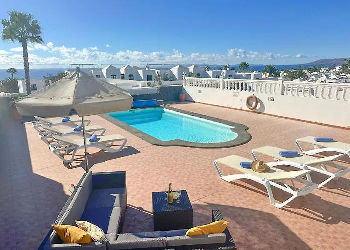 De 2-slaapkamer Villa Siempre Mar heeft een terras met uitzicht op de zee en ligt op 10 minuten rijden van de luchthaven Lanzarote.